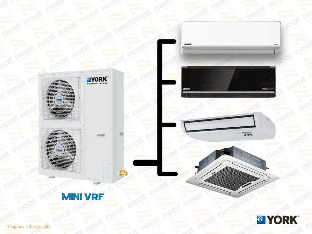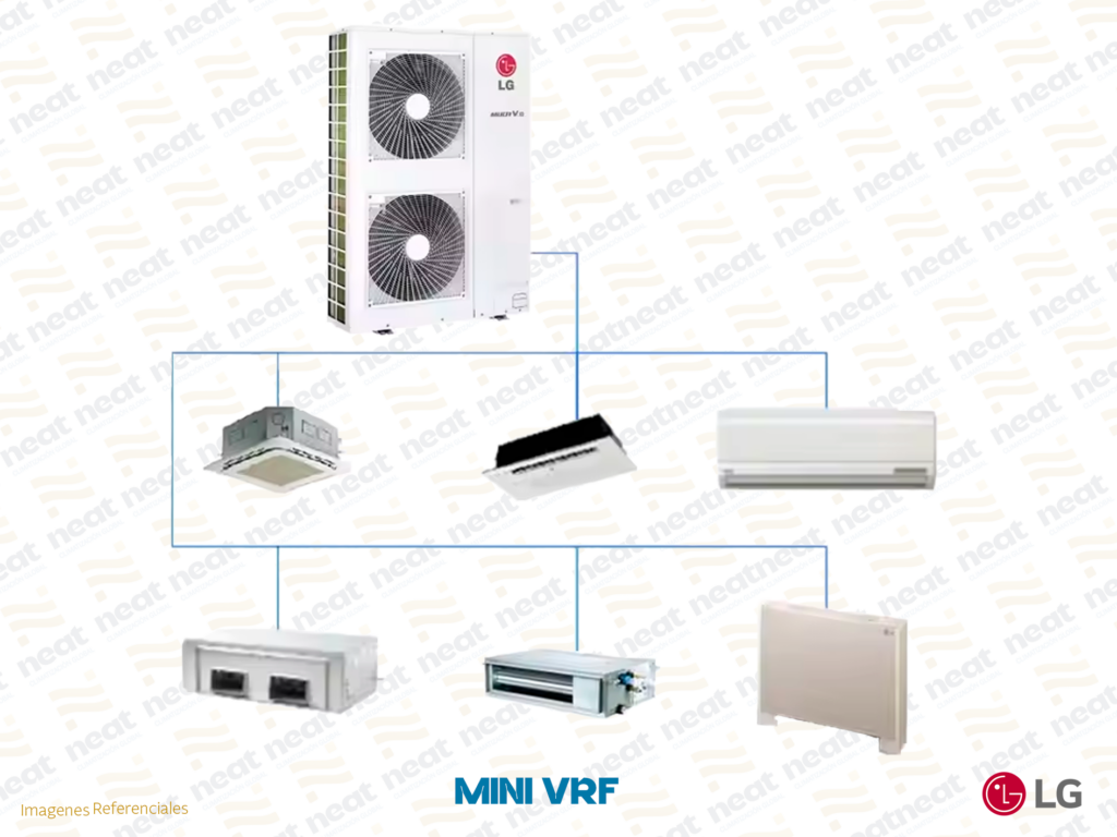 En NEAT-CLIMATIZACION GLOBAL, ofrecemos sistemas de aire acondicionado mini VRF, una solución compacta y altamente eficiente diseñada para proyectos que requieren climatización en múltiples zonas con un solo equipo. Ideales para departamentos, oficinas pequeñas, locales comerciales, consultorios y residencias, los mini VRF combinan la flexibilidad de los sistemas VRF con un tamaño reducido, permitiendo una instalación sencilla y un óptimo aprovechamiento del espacio. Con tecnología inverter, bajo consumo energético y control individual por ambiente, los equipos de aire acondicionado mini VRF que comercializamos garantizan confort, eficiencia y rendimiento superior en cada aplicación.